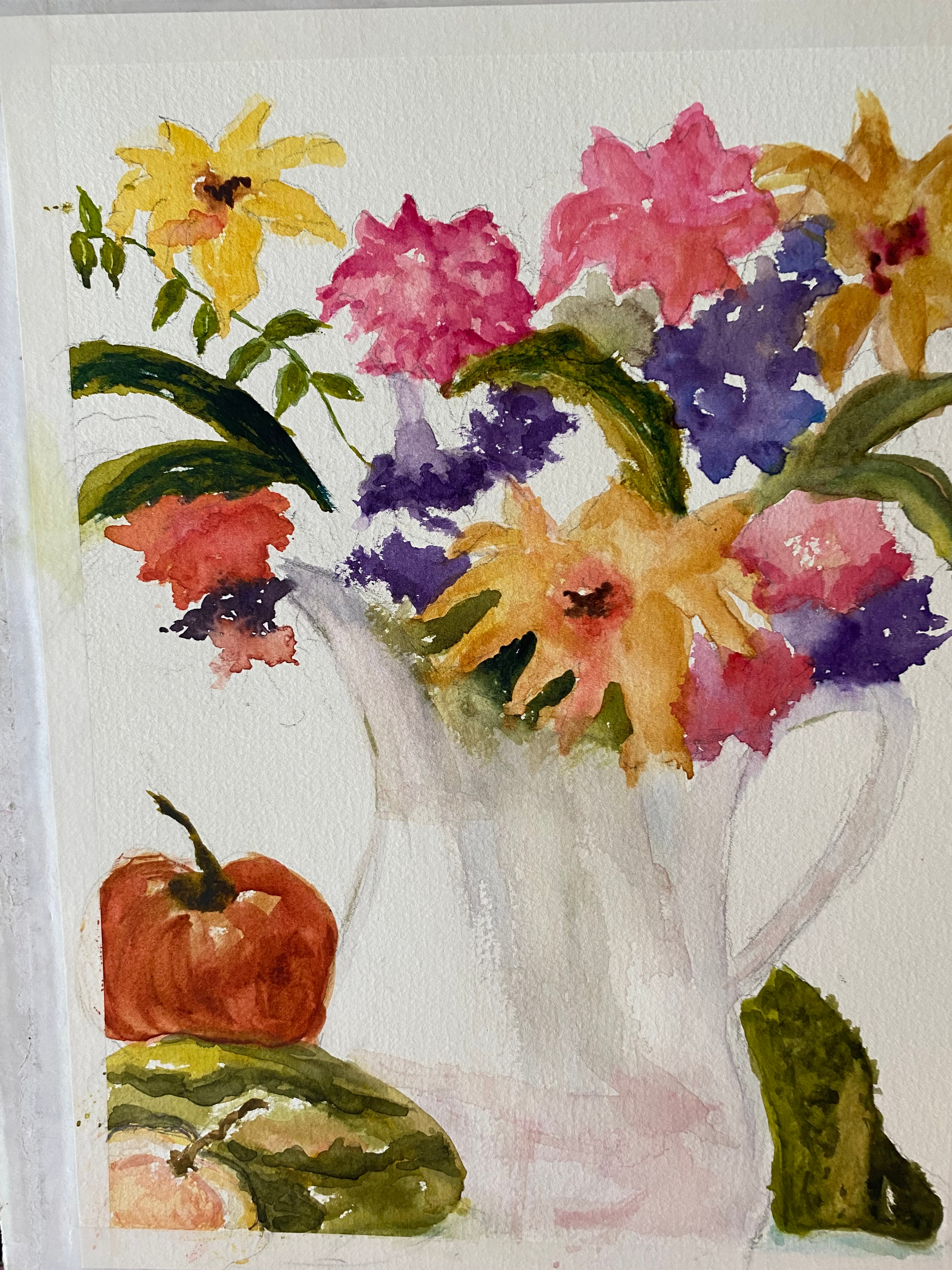 She started painting in oil and enjoyed that medium for her early painting years. When they moved to Egg Harbor Township she was introduced to watercolor and found it to be both challenging and rewarding at the same time. She studied with Marie Natale, who is a renowned water colorist and wonderful teacher, for a number of years. She has also studied with Cheryl Knowles Harrigan and enjoyed her teaching style as well.