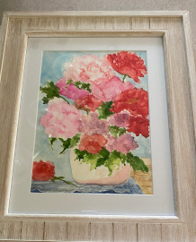 She started painting in oil and enjoyed that medium for her early painting years. When they moved to Egg Harbor Township she was introduced to watercolor and found it to be both challenging and rewarding at the same time. She studied with Marie Natale, who is a renowned water colorist and wonderful teacher, for a number of years. She has also studied with Cheryl Knowles Harrigan and enjoyed her teaching style as well.